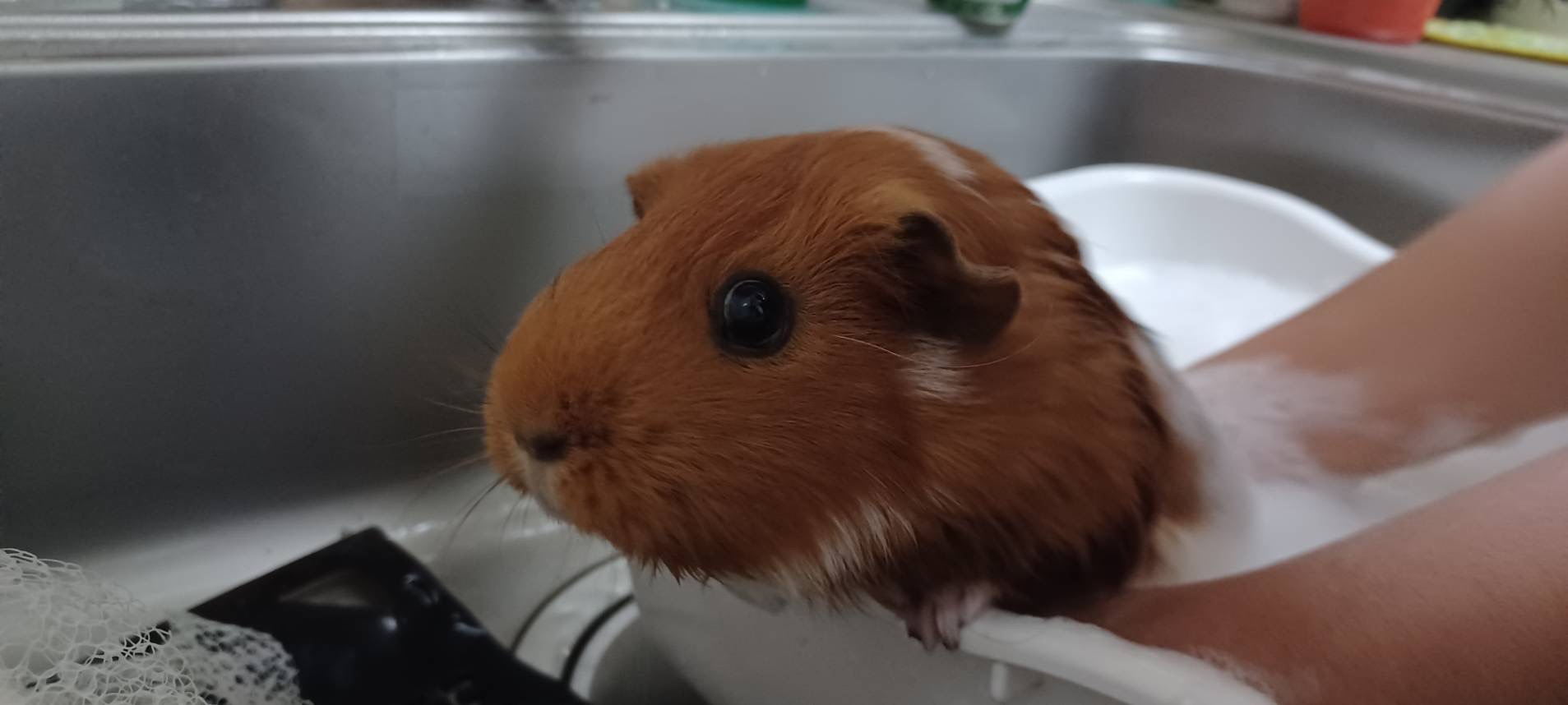 モルモットは脳が小さいのですごいストレスを与えてしまうと思考停止するのですが、お風呂に入れる時などはストレスになっているのでされるがままの状態の時が多いです